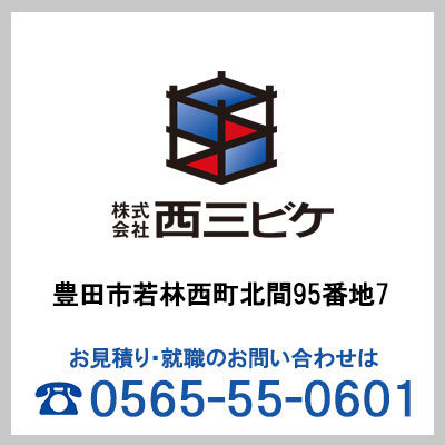 ・直進150mの後、右手に「西三ビケ」事務所となります
